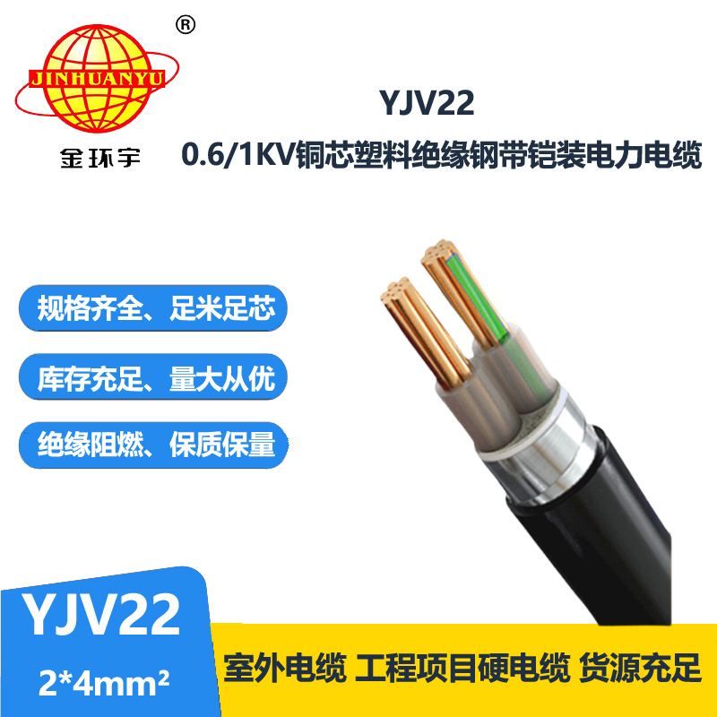 金环宇电线电缆 铜芯 铠装电力电缆YJV22 2X4平方 工程电缆