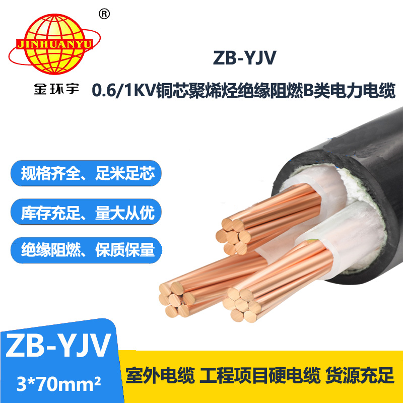 ZB-YJV 3X70平方电缆是3根70平方铜芯交联聚乙烯绝缘聚氯乙烯护套电力电缆,带阻燃特性。