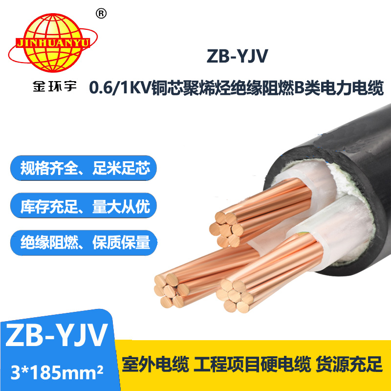 ZB-YJV 3X185平方电缆是3根185平方铜芯交联聚乙烯绝缘聚氯乙烯护套电力电缆,带阻燃特性。
