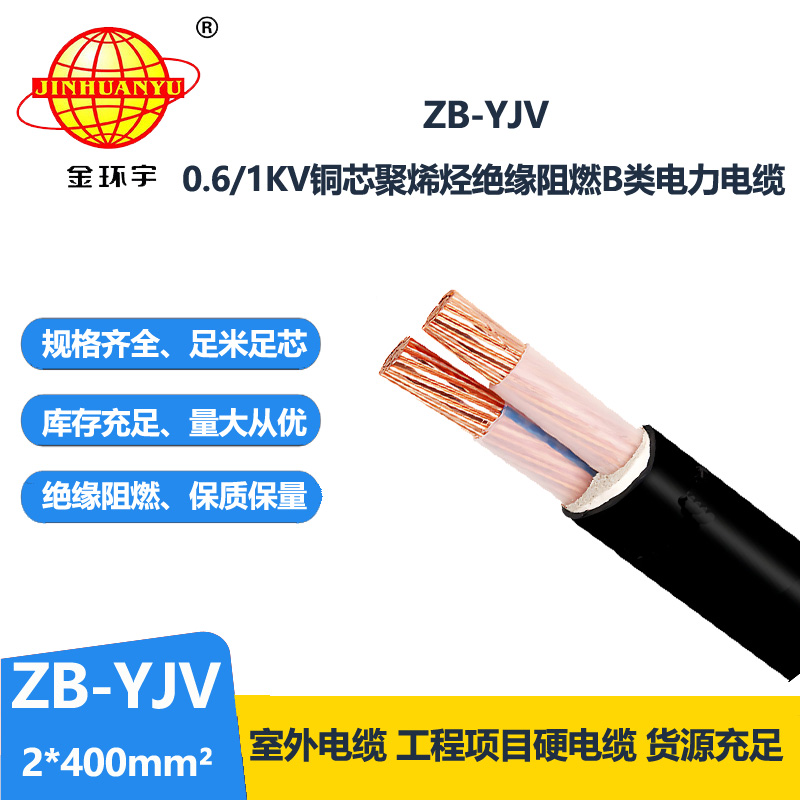 ZB-YJV 2x400平方电缆是2根400平方铜芯交联聚乙烯绝缘聚氯乙烯护套电力电缆,带阻燃特性。