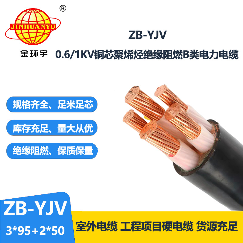 ZB-YJV 3x95+2x50平方电缆是3根95平方+2根50平方的铜芯交联聚乙烯绝缘聚氯乙烯护套电力电缆,带阻燃特性。