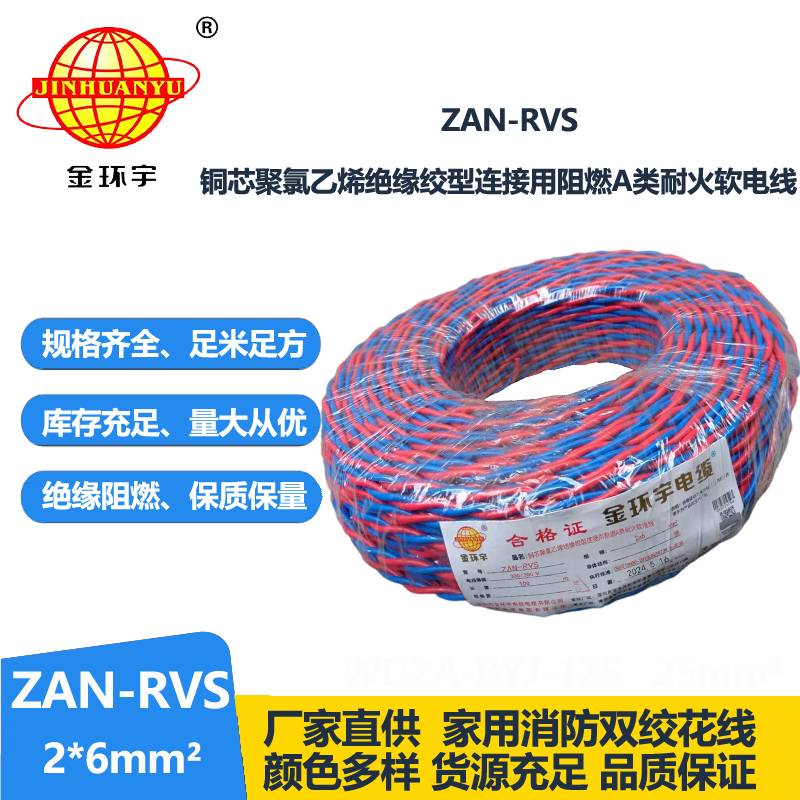 金环宇电缆 ZAN-RVS2x6平方阻燃耐火双绞线 rvs电缆报价