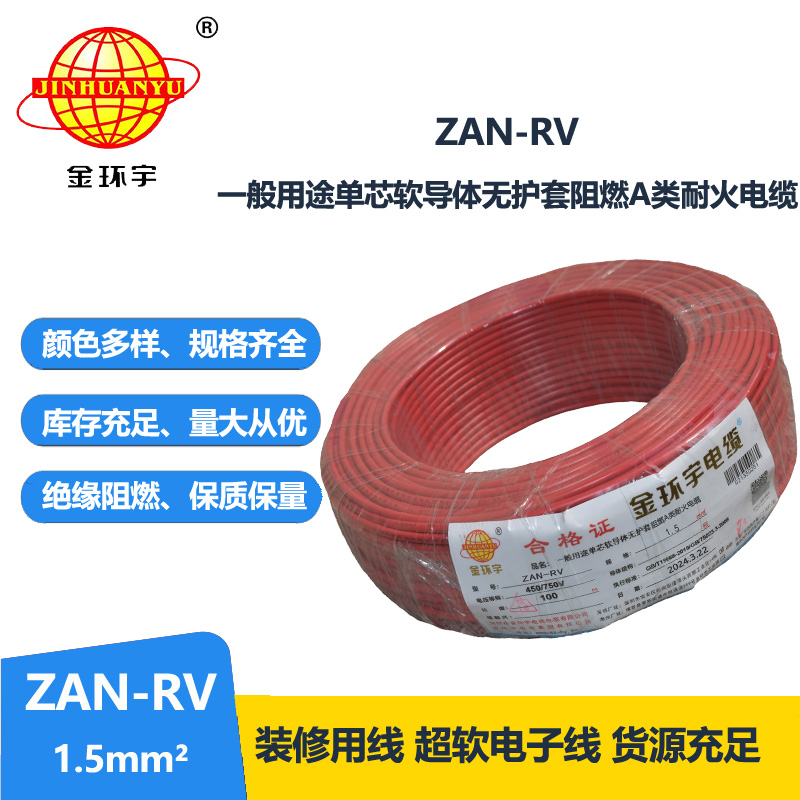 金环宇电线电缆 耐火rv电线ZAN-RV 1.5平方 阻燃a类软电线