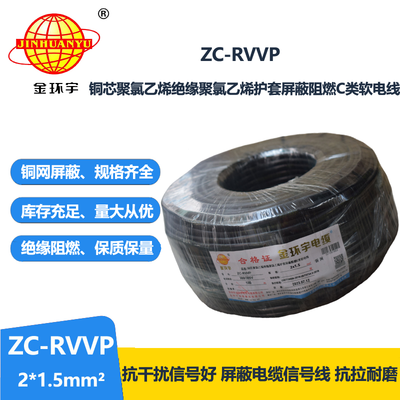 金环宇电线电缆 ZC-RVVP2X1.5阻燃铜编织屏蔽电缆线 防干扰