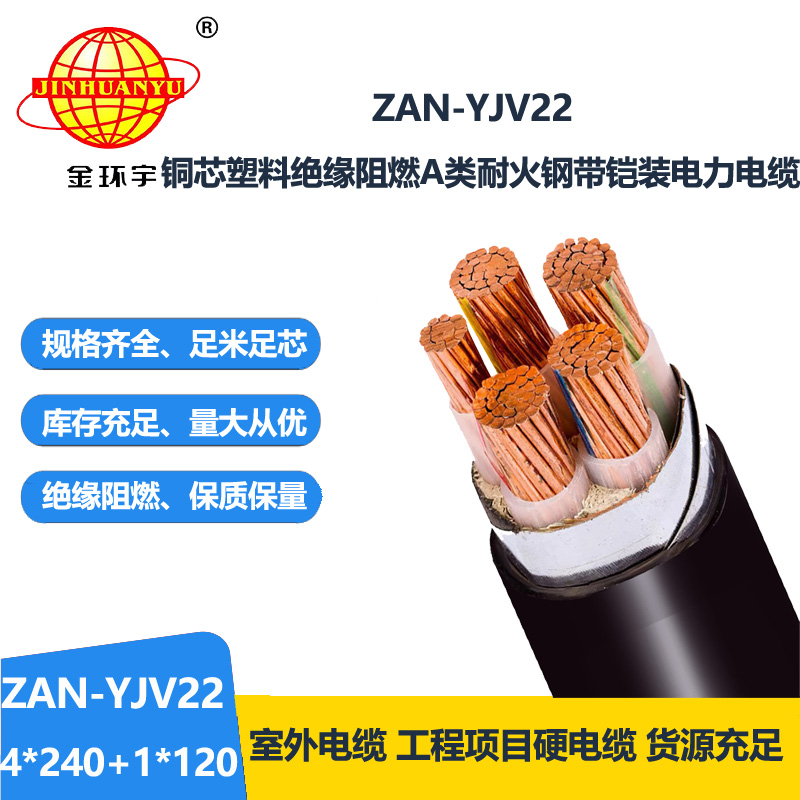 ZAN-YJV22电缆:铜芯交联聚乙烯绝缘聚氯乙烯护套钢带铠装A类阻燃耐火型电力电缆,