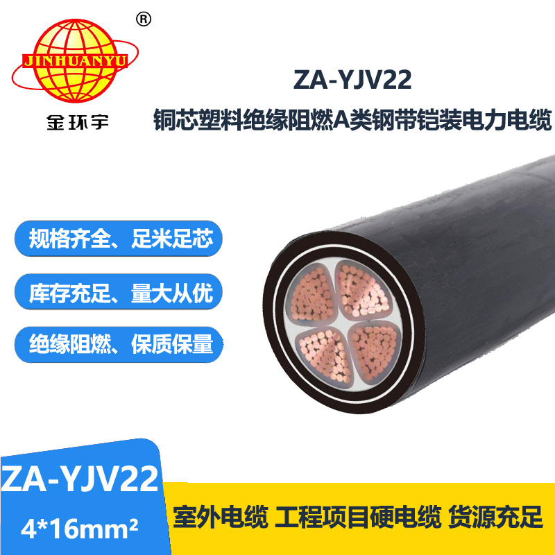 金环宇电缆 a级阻燃型铠装铜芯电缆 ZA-YJV22-4X16平方 电力电缆