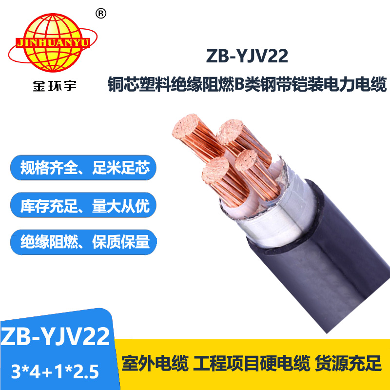 金环宇电缆 yjv22电缆 阻燃铠装电力电缆ZB-YJV22-3X4+1X2.5