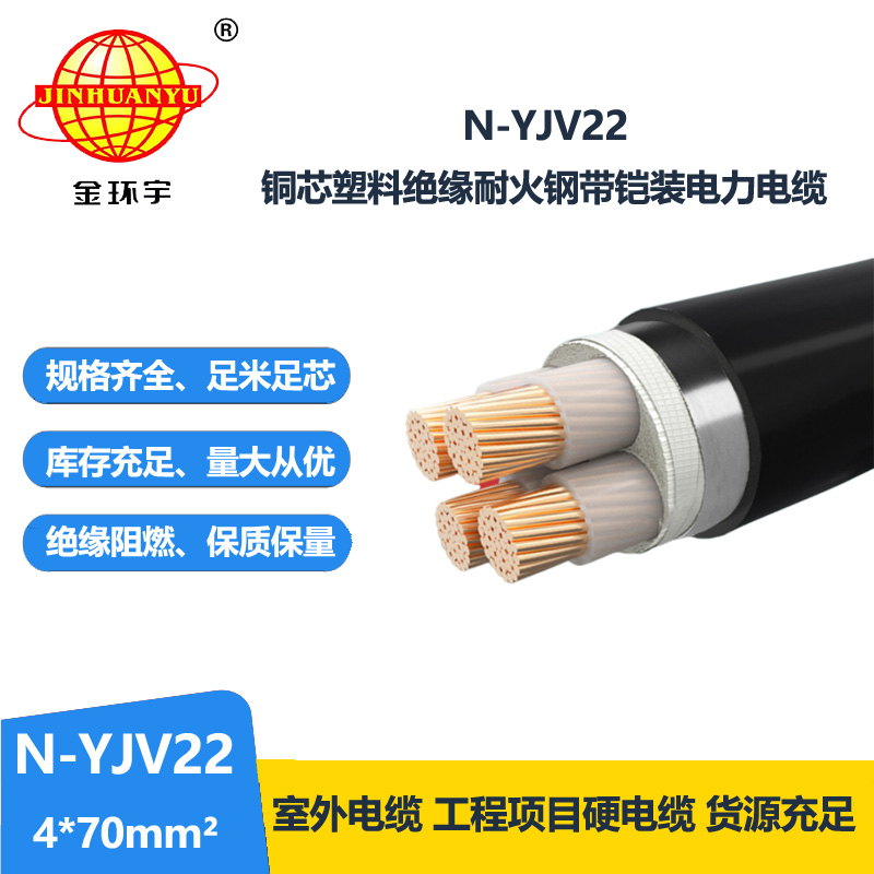 金环宇电线电缆 yjv22电缆钢带铠装N-YJV22-4X70平方 深圳耐火电缆厂