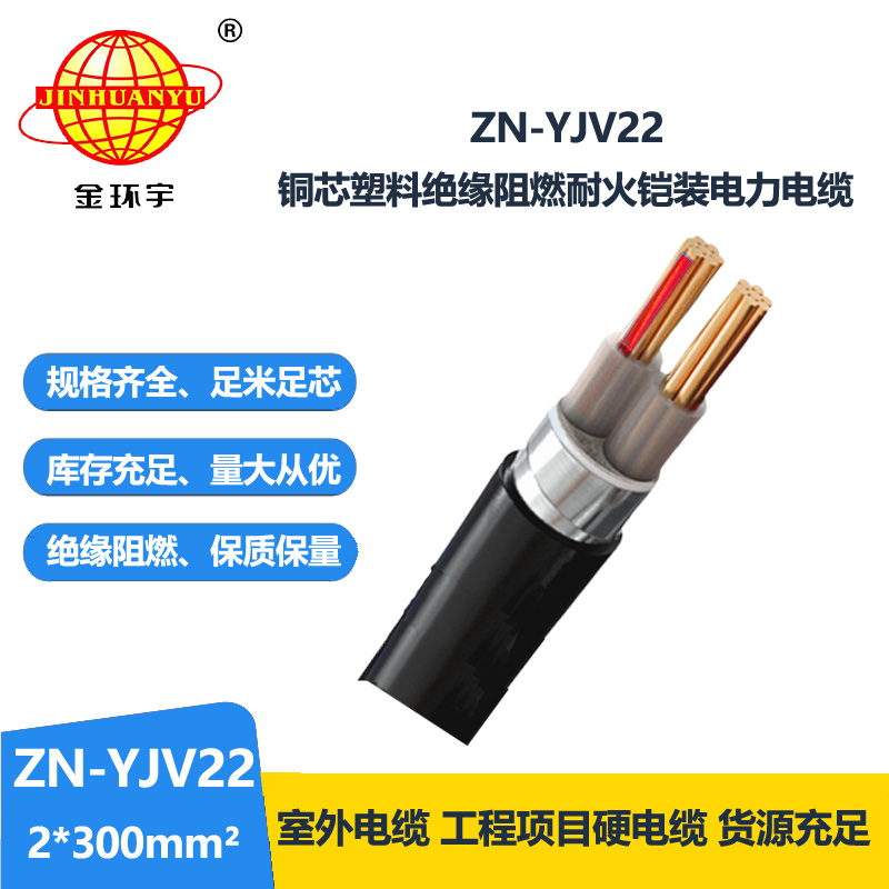 金环宇电缆 多芯阻燃耐火铠装电缆ZN-YJV22-2X300平方 深圳yjv22电缆