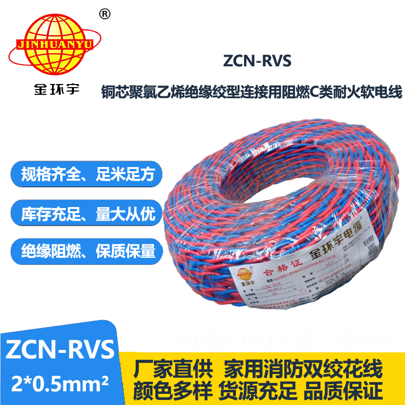 金环宇电缆 ZCN-RVS 2x0.5平方阻燃耐火电缆产品介绍